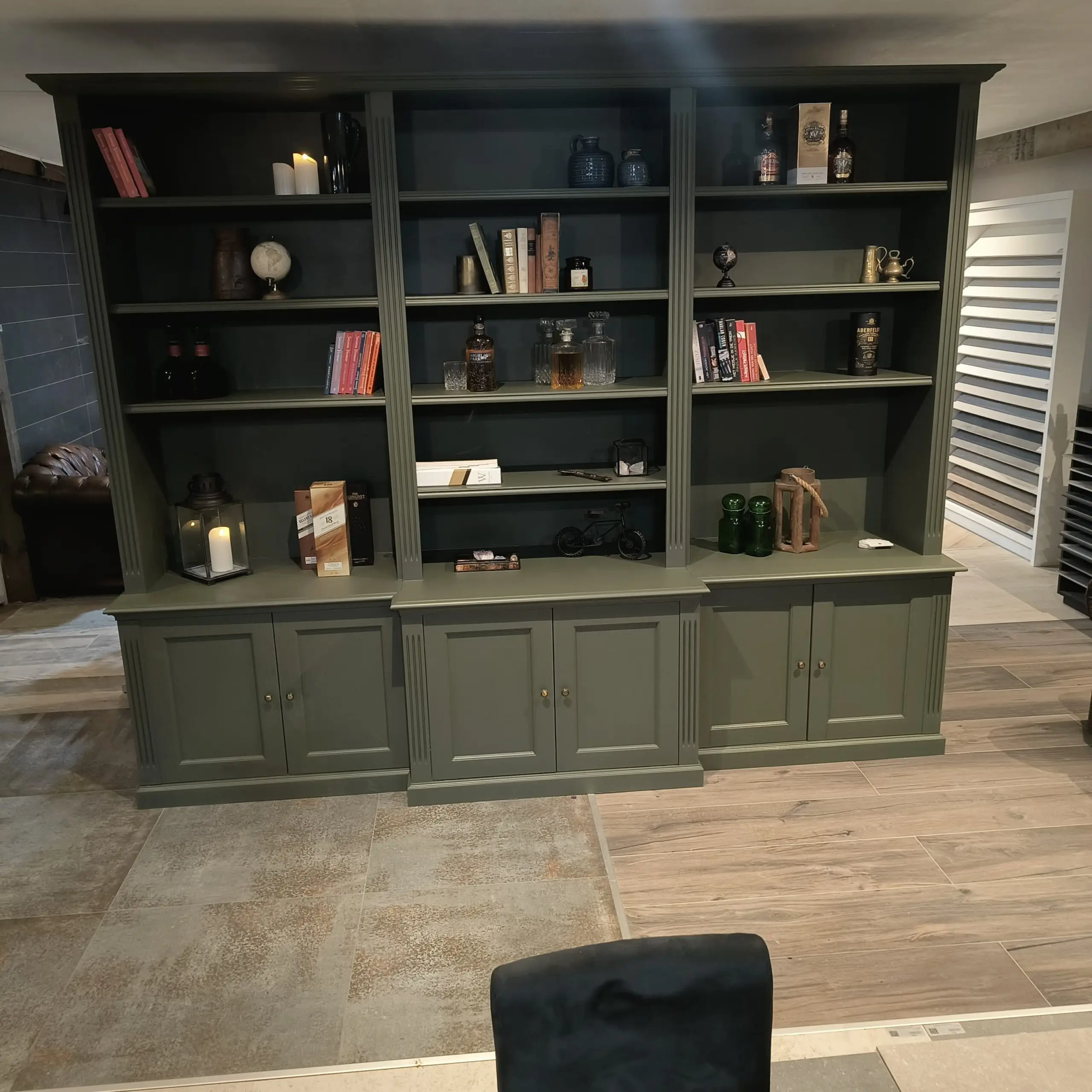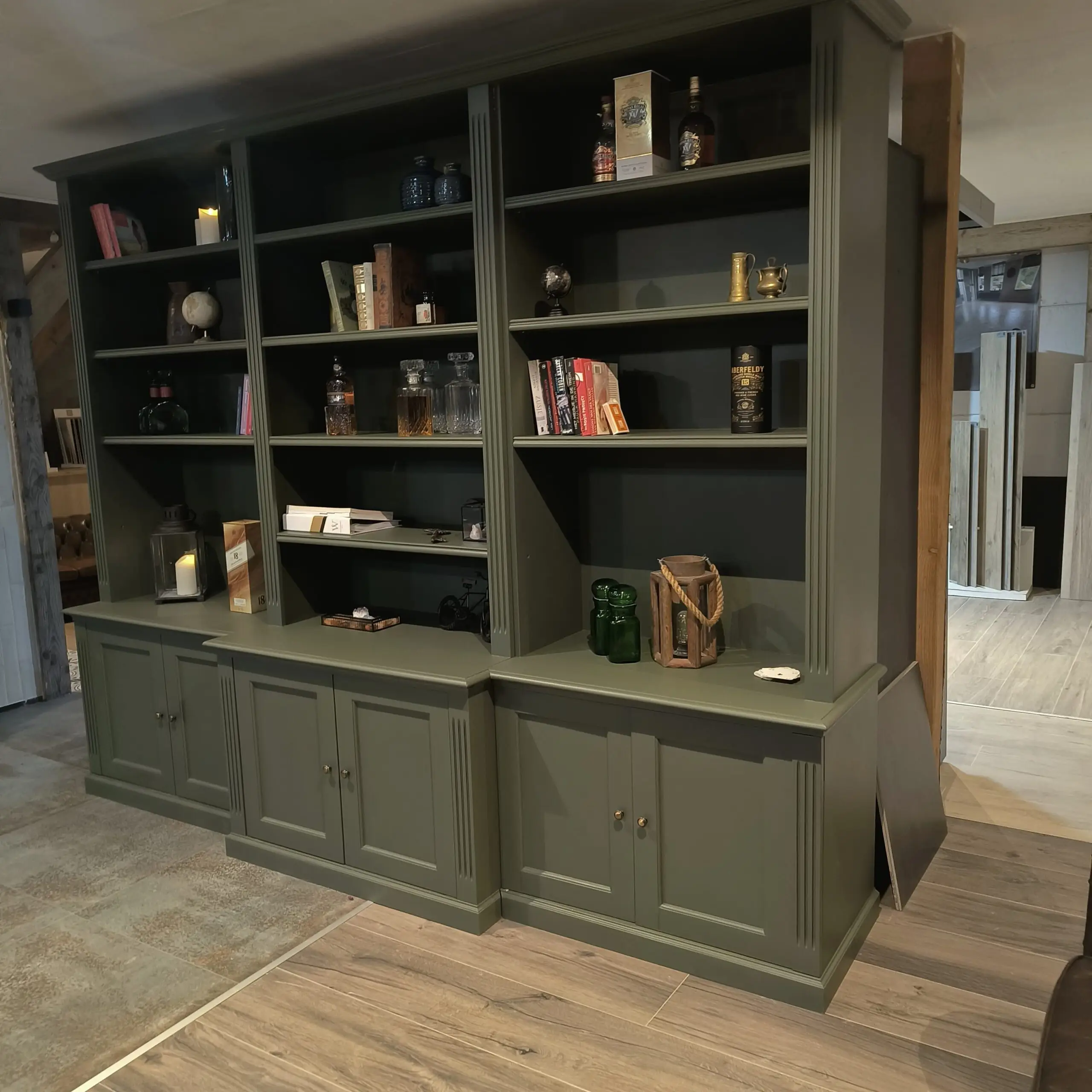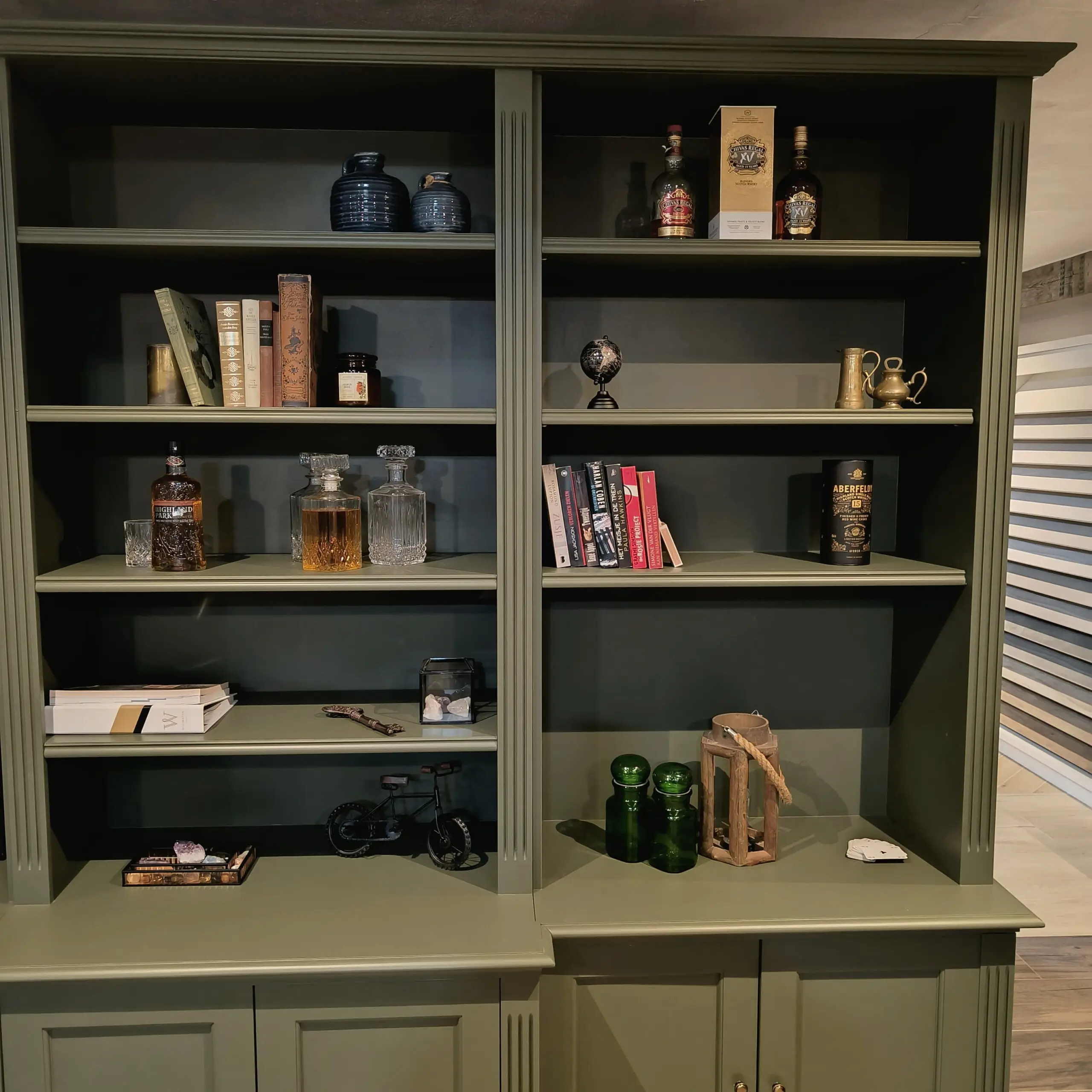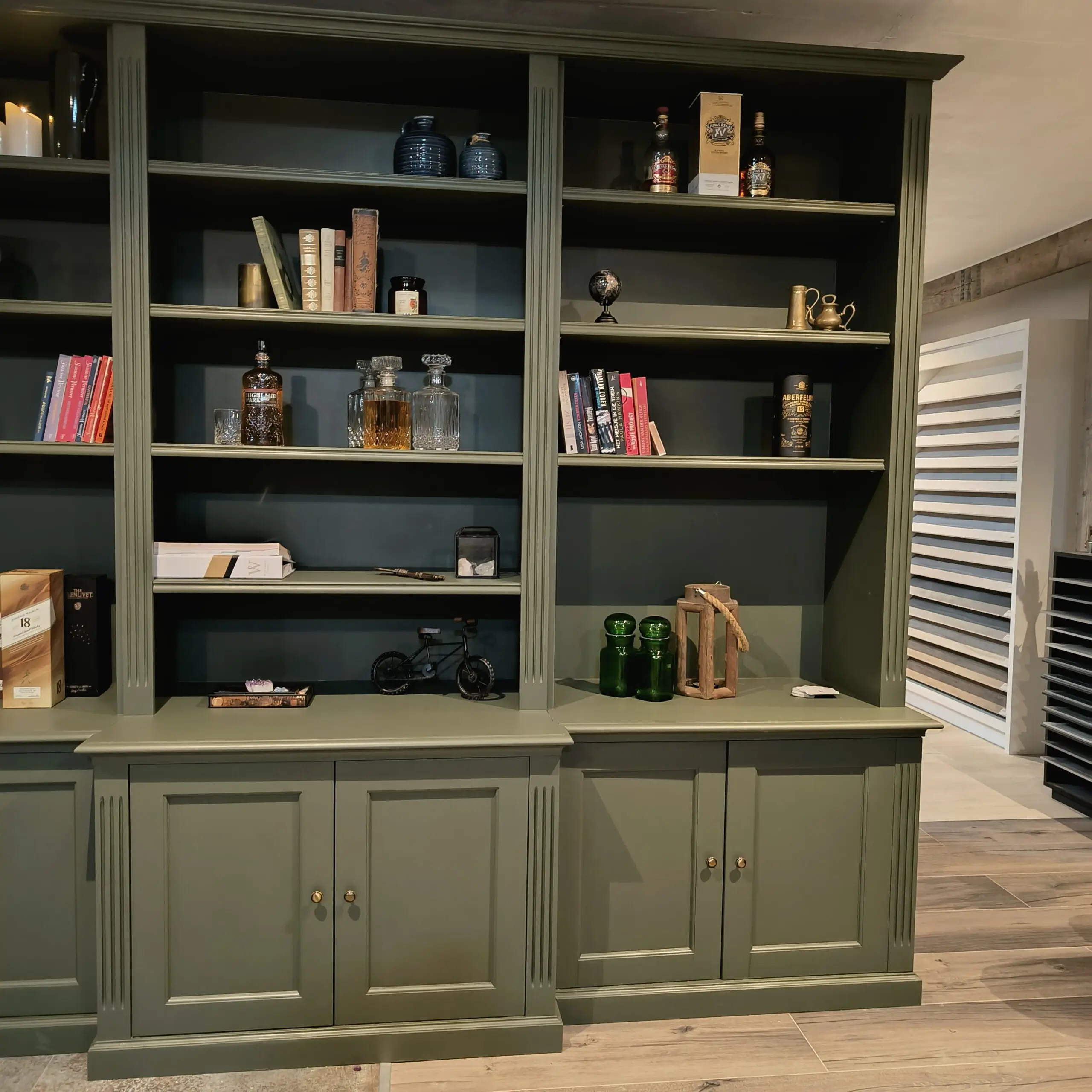 Staat deze unieke parel straks bij jou? Een grote boekenkast in een exclusieve kleur, met heel veel kastruimte . Zowel planken als dichte kastjes.