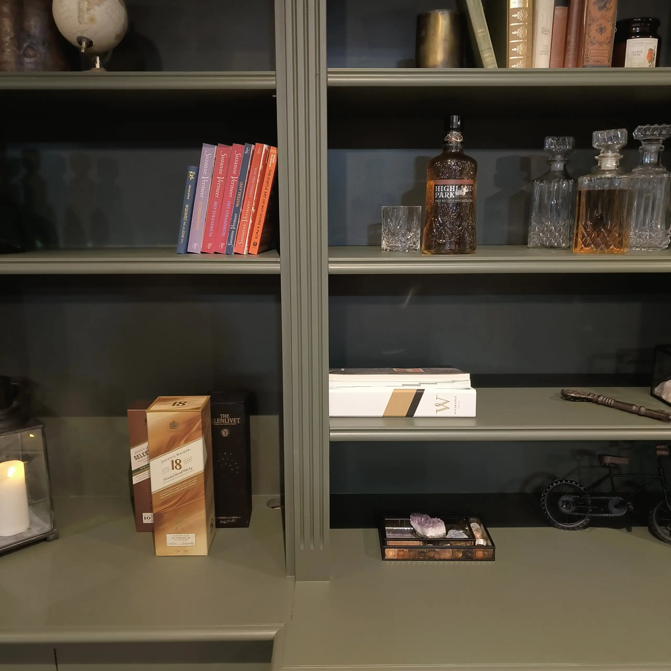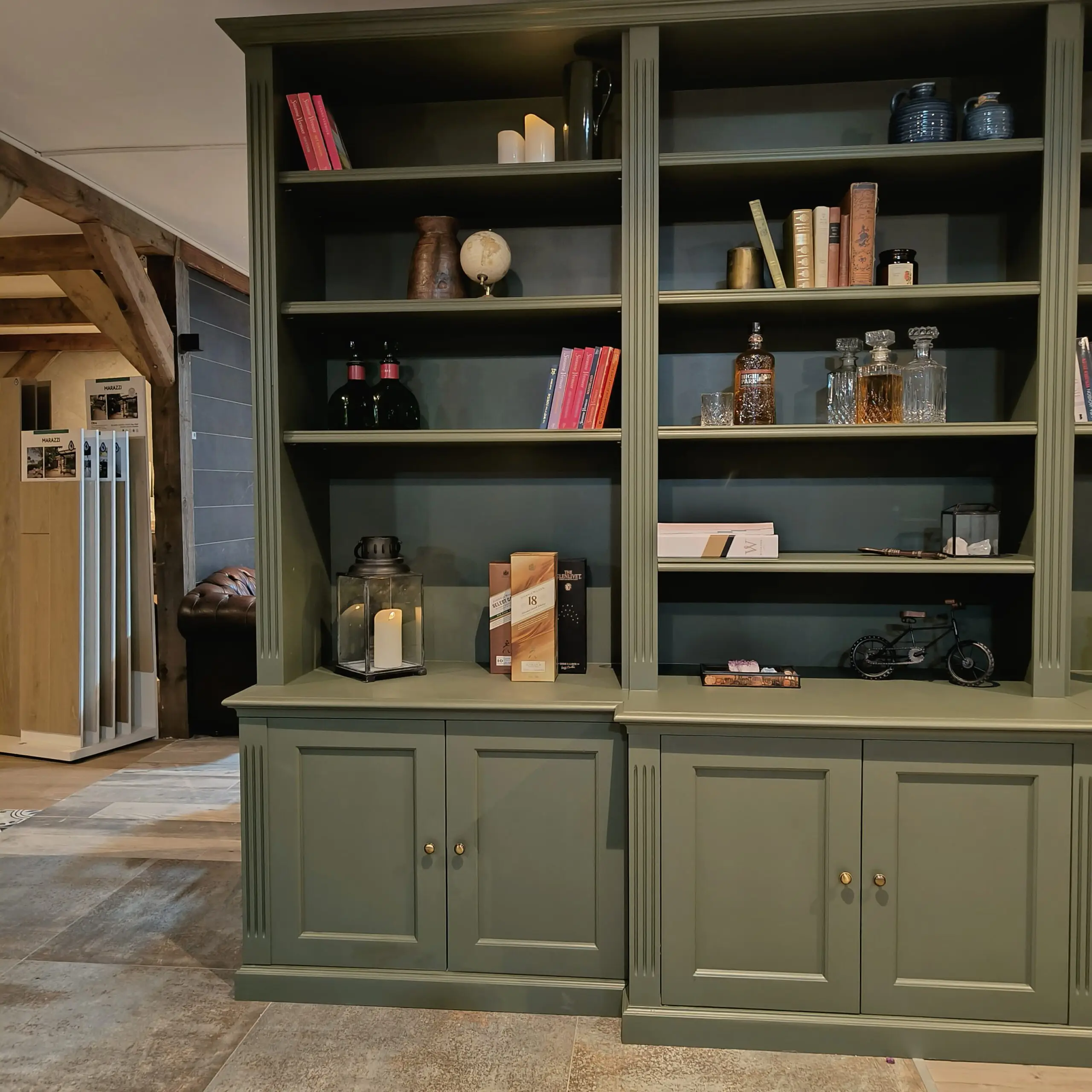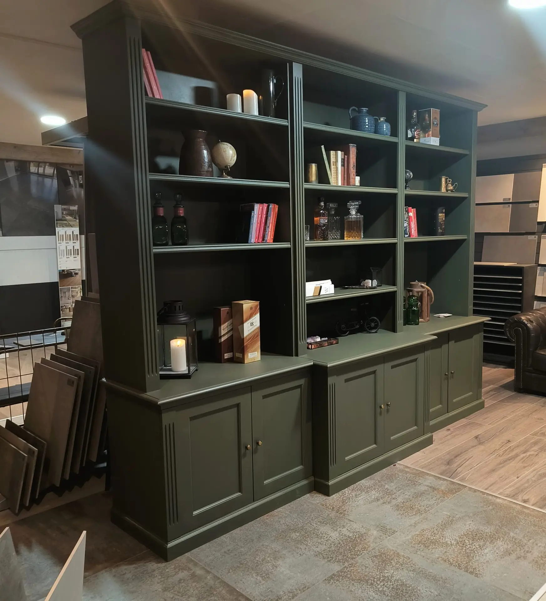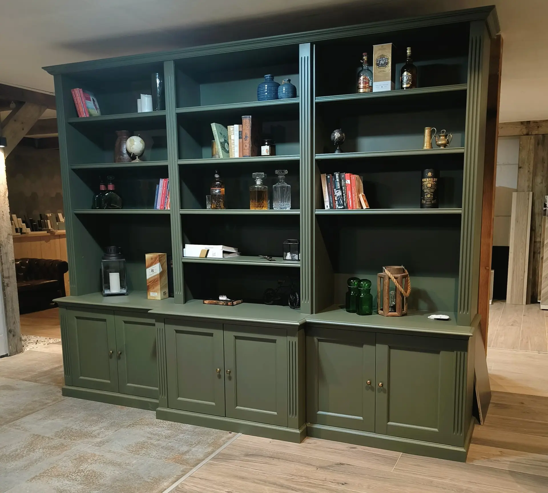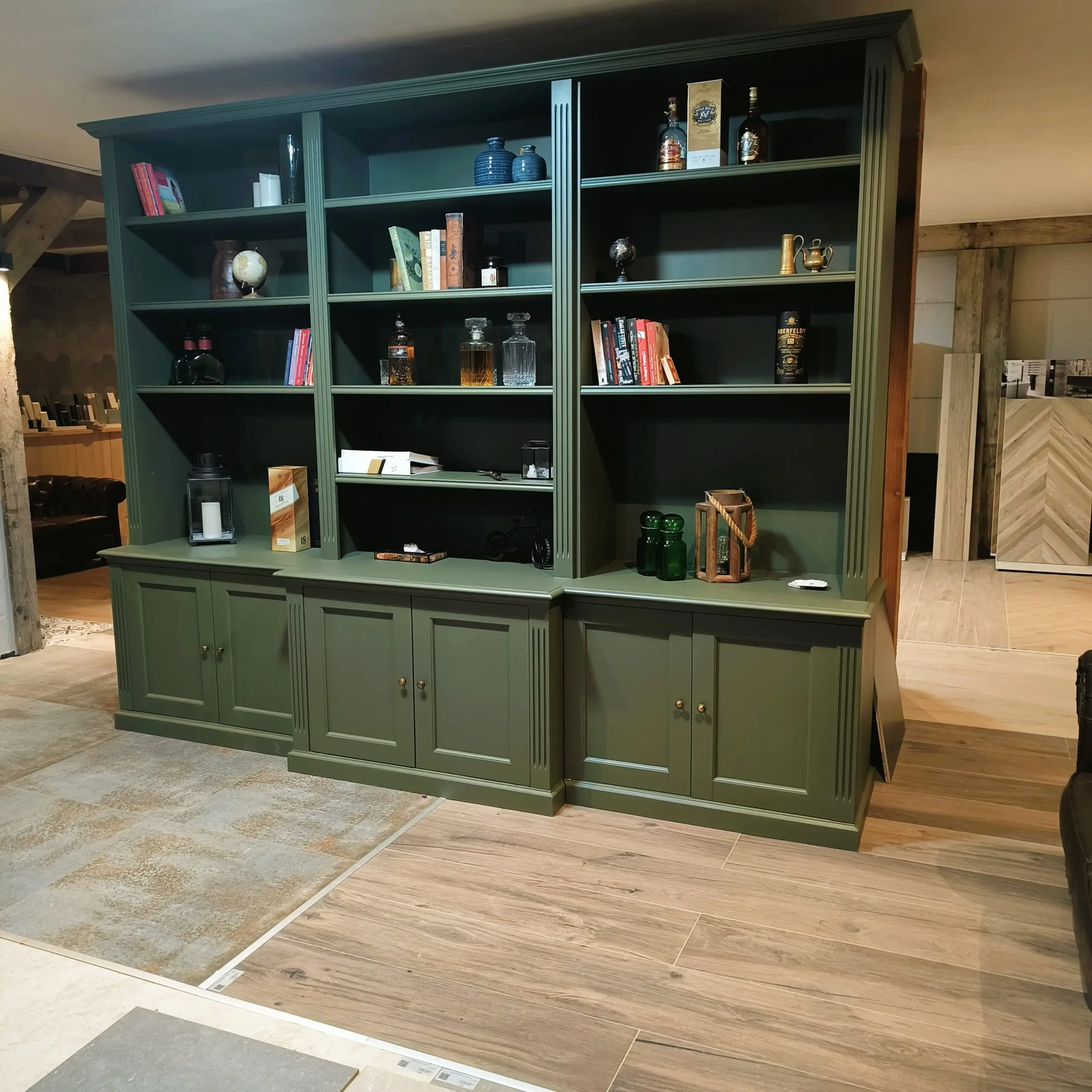 Staat deze unieke parel straks bij jou? Een grote boekenkast in een exclusieve kleur, met heel veel kastruimte . Zowel planken als dichte kastjes.